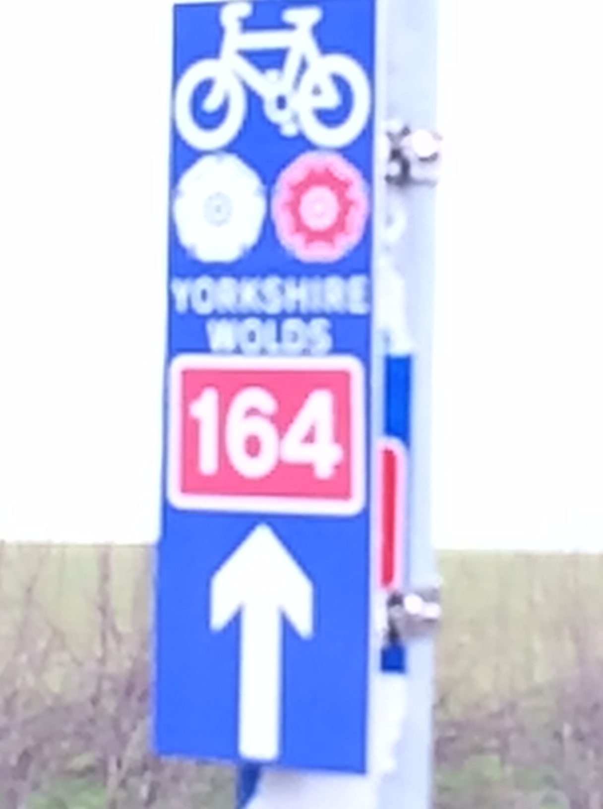 We consulted the phone map and discovered we were off the route by a couple of miles. Apparently a turn off a hill we were descending was not the Way of the Roses but why on the same signpost it didn’t direct us straight on is a question for the sign police. Back we went a few miles anyway to the sign and it turns out it does show you the Way of the Roses on the sign but you can only see it if you are coming from the wrong way, as we were. Almost as if it is somehow planned for us to turn off and for me to get a flat tyre, like something out of a horror movie.